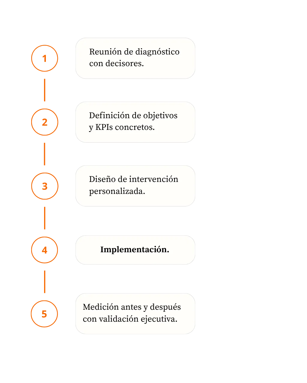 Trabajamos el vínculo entre liderazgo, clima y desempeño para que el impacto se vea en indicadores concretos del negocio.